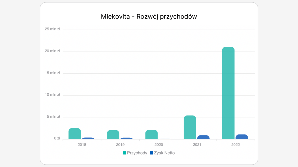 Mlekovita osiąga imponujące wyniki finansowe, z przychodami rocznymi przekraczającymi 5 miliardów złotych. Firma intensywnie inwestuje w nowoczesne technologie i rozbudowę swoich zakładów produkcyjnych, co pozwala na zwiększenie wydajności i poprawę jakości produktów. Mlekovita jest także jednym z największych eksporterów produktów mleczarskich z Polski, dostarczając swoje wyroby do ponad 160 krajów na całym świecie.