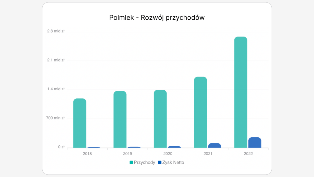 Grupa Polmlek osiąga solidne wyniki finansowe, z przychodami rocznymi przekraczającymi 3 miliardy złotych. Firma systematycznie zwiększa swoje udziały rynkowe, zarówno na rynku krajowym, jak i międzynarodowym. Polmlek jest także jednym z największych eksporterów produktów mleczarskich z Polski, dostarczając swoje wyroby do krajów Unii Europejskiej, a także do Azji i Afryki.